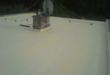 - Polyuretanová pěna tvrdne během několika sekund po nanesení na střešní plášť. Po nástřiku izolační pěny na požadovanou sílu a po provedení povrchových úprav, je nutné aplikovat ochrannou vysoce odolnou Polyureu. Tato ochranná vrstva vytvoří trvanlivý povrch odolný povětrnostním vlivům, po němž lze bez problémů chodit. Životnost takto vytvořené střechy se rovná živnotnosti stavby.