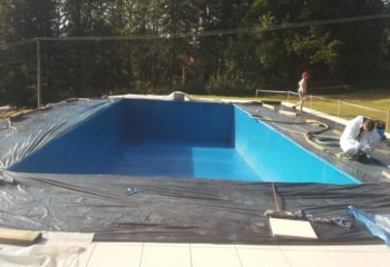 Realizace bazénu prostřednictvím polyurey Slam 210.