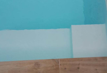 Příprava podkladu – vystěrkovaný bazén stavebním lepidlem – absolutně rovný povrch.