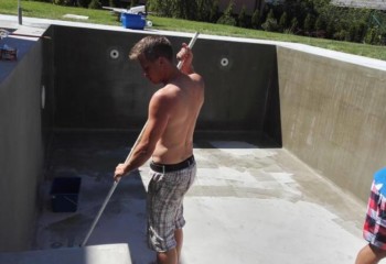 Nástřik betonového bazénu v obci Hodoňovice u Frýdku-Místku.
