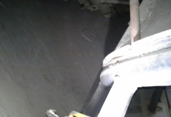 Odstranění starého pogumu a ochranný nástřik povrchu loužícíh kolon materiálem polyurea Slam 210 v prostorách odštěpného závodu GEAM, Dolní Rožínka.