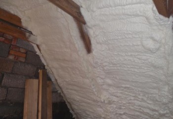 Zateplení podkroví měkkou izolační pěnou v podkroví v síle 16cm.