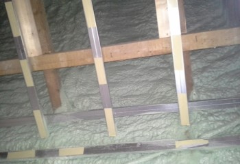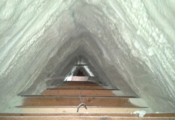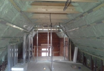 2) Konstrukce střechy se maximálně zpevnila díky nástřiku izolační pěny Heatlok Soy 200 v síle