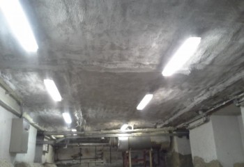 Pro izolaci sklepních prostor byla použita tvrdá nenasákavá pěna NG 0428 v síle vrstvy 16 cm což odpovídá cca 32 cm polystyrenu. Jako svrchní vrstva nehořlavá vrstva bylo použito fasádní lepidlo.